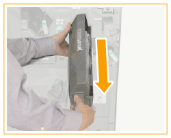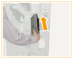 Urmați procedura descrisă în această secțiune pentru a elimina deșeurile de perforare din dispozitivul Puncher Unit-BS/Puncher Unit-BT/Puncher Unit-BU instalat în dispozitivul opțional Staple Finisher-AF/Booklet Finisher-AF.