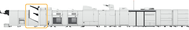 Copiile şi documentele imprimate pot fi scoase în echipamentul opţional în timpul înlocuirii cutiei de capse. Aveţi grijă la manipularea echipamentului opţional instalat pe aparat. |