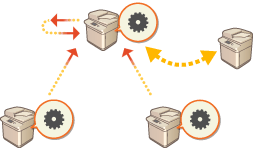 Când replicarea nu poate fi oprită la aparatul serverDacă replicarea nu a putut fi oprită de pe aparatul server deoarece acesta nu funcționează etc., aparatul care a fost setat ca destinație de replicare nu poate fi setat ca destinație de replicare de către un alt aparat server. Începeți sincronizarea ca aparat server în [Synchronize Custom Settings] în interfața Remote UI (IU la distanță) pentru aparatul de destinație a replicării, apoi opriți sincronizarea din [Synchronize Custom Settings (Server)]. Pornirea sincronizării setărilor |