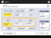 Când efectuaţi copierea broşurilor cu documente originale faţă-verso, apăsaţi <Original cu 2-Feţe> şi selectaţi <Tip carte> sau <Tip calendar> după cum este necesar.