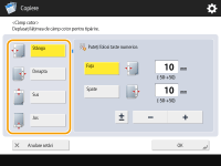 Când este setată marginea, imaginile sunt deplasate cu lăţimea marginii şi sunt copiate. Un document original a cărui imagine se întinde până la marginile hârtiei poate fi parţial decupat pe copie. |