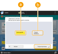 ![]() | Acest mod vă permite să imprimați întregul set de imprimare sau o singură pagină într-o altă tavă de ieșire în timp ce imprimați o lucrare de copiere. Acest mod este util atunci când doriți să verificați ieșirea de mai multe ori, în timp ce realizați un număr mare de copii. |