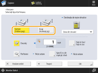 ![]() | La efectuarea a două copii sau mai multe din alimentator, puteţi selecta colaţionarea sau gruparea pentru ordinea documentelor imprimate. Selectaţi „Colaţionare” pentru a imprima în ordinea secvenţială a paginilor. Selectaţi „Grupare” pentru a imprima seturi din fiecare pagină, cum ar fi 10 foi pentru prima pagină, 10 foi pentru a doua pagină etc. |