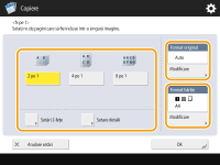 Selectaţi modul de aranjare a paginilor, dimensiunea documentului original şi dimensiunea hârtiei pentru copiere.