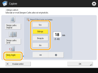 1 | Apăsaţi <Şterge cadru original> şi setaţi <Format Original>. ![]() Dacă dimensiunea afişată în <Format Original> este diferită de dimensiunea documentului original aşezat, apăsaţi <Modificare> pentru a selecta dimensiunea. |