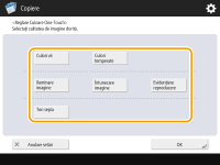 Apăsaţi <Opţiuni> pe ecranul Caracteristici de bază pentru copiere.