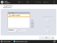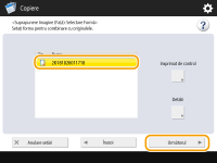 Dacă doriți să imprimați doar imaginea formularului pentru a verifica rezultatul, selectați imaginea formularului din listă și apăsați <Imprimat de control>. Dacă doriți să confirmați dimensiunea imaginii formularului și setarea de suprapunere, apăsați <Detalii>.