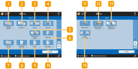 Consultați funcția <Copiere> pentru detalii, care variază de la o funcție la alta. |