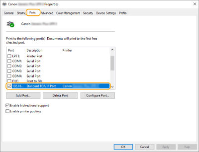 Faceţi clic pe fila [Ports].