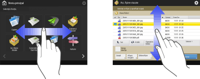 Când într-o listă apar mai multe lucrări/fişiere, puteţi apăsa <Nume> sau <Data/Ora> pentru a sorta lista de articole. Când se afişează