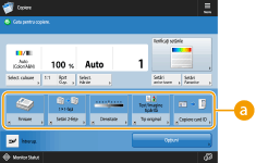 Numărul de articole de setare amplasate în ecranul Caracteristici de bază şi locul afişării depind de fiecare funcţie. Butonul de comenzi rapide nu se va afişa dacă <Neatribuit> s-a setat ca o comandă rapidă. Limita numărului de comenzi rapide pentru <Opţiuni> pe care le puteţi înregistra este după cum urmează. Copiere (de bază): 5 Copiere (rapidă): 6 Scanare şi Transmitere: 2 Dacă ați schimbat ecranul Caracteristici de bază pentru copiere cu ecranul Copiere rapidă (Modificarea rapidă a setărilor (ecranul Copiere rapidă)), selectați butonul din pasul 3 și apăsați <Înregistrare>. |