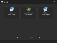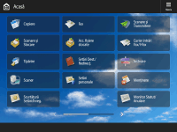Ordinea, dimensiunea şi numărul butoanelor afişate în ecranul <Acasă> se pot modifica, iar imaginea din fundal poate fi schimbată. <Setări Gestionare Acasă> vă permite să afișați/să ascundeți butoanele funcționale.