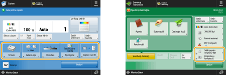 Puteţi modifica butoanele de setare afişate în ecranele Caracteristici de bază (pentru copiere și scanare). De asemenea, puteţi afişa câte un ecran Caracteristici de bază personalizat pentru fiecare utilizator conectat.