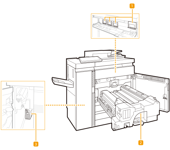 Trageţi afară această tavă pentru a înlocui recipientul de toner rezidual.