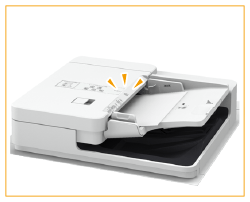 Pentru a scana mai precis documente originaleDocumentele originale plasate în alimentator sunt scanate în timp ce sunt alimentate în aparat. Pe de altă parte, documentele originale poziţionate pe platoul din sticlă rămân într-o poziţie fixă în timp ce sunt scanate. Pentru a asigura rezultate mai precise la scanare, este recomandată aşezarea documentelor originale pe suprafaţa de scanare.