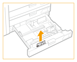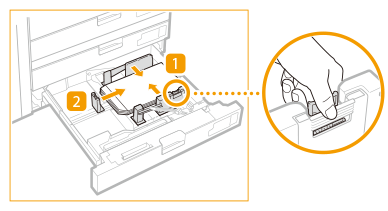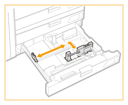 ![]() | Glisați ghidajul din stânga în timp ce îl strângeți în partea superioară pentru a-l alinia cu formatul plicului încărcat. ![]() |