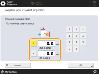 Specificaţi lungimea părţii <X> şi a părţii <Y>. Apăsaţi <X> sau <Y> pentru a introduce lungimea fiecărei părţi utilizând tastele numerice.