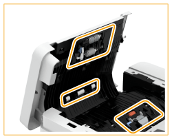 Curăţaţi rolele din interiorul capacului alimentatorului.