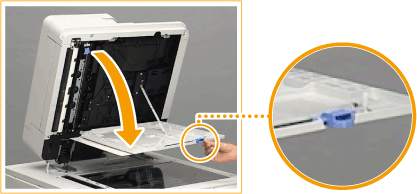 | Închideți capacul zonei de scanare a documentelor până când se fixează în poziție. |