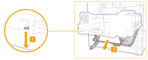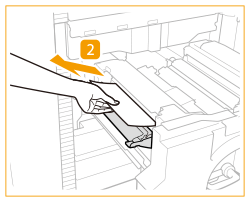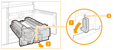 ![]() | Ținând de levierul C2, trageți unitatea de transport de fixare în afară. ![]() ![]() Unitatea de fixare şi zonele din jurul său sunt supuse la temperaturi ridicate. Când scoateţi hârtia blocată, aveţi grijă să nu atingeţi nimic în această zonă. ![]() Dacă indicatorul de blocare al levierului C2 ( ) luminează în roșu, levierul C2 nu poate fi deblocat. Urmați instrucțiunile de pe ecran pentru a îndepărta hârtia blocată. |
