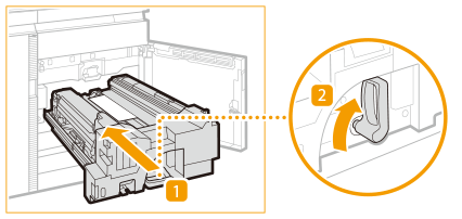 ![]() | Împingeți ușor unitatea de transport de fixare înapoi în aparat, ținând levierul C2. ![]() Când apăsați unitatea de transport de fixare, levierul C2 pe care-l țineți se poate mișca astfel încât să se ridice, dar aceasta nu constituie o defecțiune. Împingeți-o până la capăt și treceți la pasul următor. |