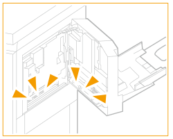 ![]() | Țineți ghidajul C4 deschis cu mâna și verificați dacă au rămas sau nu bucăți de hârtie. Dacă rămân bucăți de hârtie, îndepărtați-le. ![]() ![]() Când eliberați ghidajul C4, acesta se închide. |