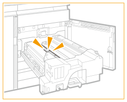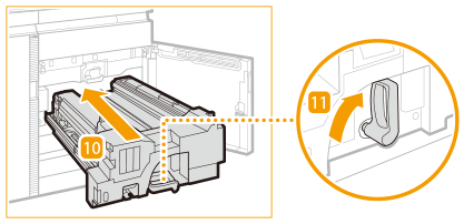 ![]() | Împingeți ușor unitatea de transport de fixare înapoi în aparat, ținând levierul C2. ![]() Când apăsați unitatea de transport de fixare, levierul C2 pe care-l țineți se poate mișca astfel încât să se ridice, dar aceasta nu constituie o defecțiune. Împingeți-o până la capăt și treceți la pasul următor. |
