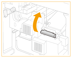 Trageţi pârghia ghidajului de evacuare a hârtiei pentru a deschide capacul.