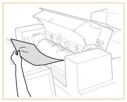 Scoateţi hârtia rămasă în zona de ieşire.
