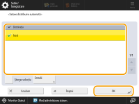Dacă ID-ul administratorului de sistem și codul PIN al aparatului client sunt diferite de cele ale aparatului gazdă, informațiile despre dispozitiv nu pot fi distribuite. Schimbarea ID-ului şi a PIN-ului managerului de sistem Pregătirea procesului de distribuire a informațiilor despre dispozitiv sau actualizarea informațiilor după primirea acestora poate dura câteva minute. Nu opriți aparatul până când procesul de pregătire sau actualizare nu este finalizat. Aceasta poate provoca funcționarea defectuoasă a aparatului. Ecranul de actualizare a setărilor este afișat pe aparatul client care primește informațiile despre dispozitiv și nu se pot efectua operațiuni până când actualizarea nu este finalizată. Se recomandă distribuirea informațiilor despre dispozitiv într-un moment în care nu sunt utilizatori. |