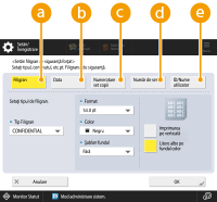 <Data>Încorporați data la care s-a realizat imprimarea sau copierea. Selectați formatul de afișare în lista derulantă <Format dată>.