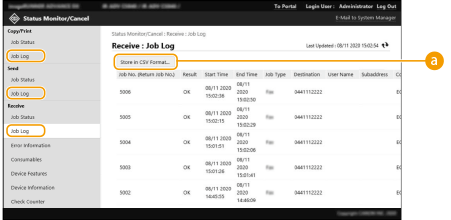 Puteţi utiliza IU la distanţă pentru a verifica starea documentelor care aşteaptă să fie procesate, precum şi jurnalele pentru documentele care au fost procesate. Puteţi verifica, de asemenea, starea aparatului, cum ar fi informaţiile despre erori şi cantitatea de consumabile rămasă.