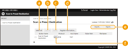 [Import...] / [Export...]Buton Import/Export scanare către destinație implicită.
