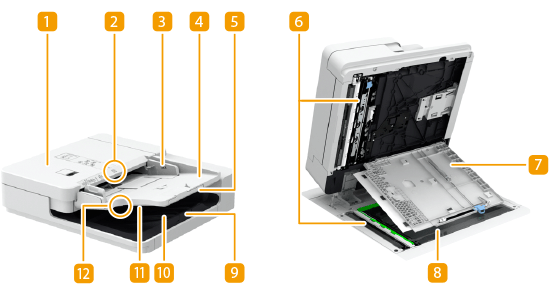 Documentele originale plasate aici sunt alimentate automat în alimentator. Când sunt încărcate două sau mai multe foi, documentele originale pot fi scanate încontinuu.