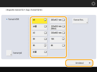 Selectaţi acelaşi format de hârtie ca și cea încărcată în „Document Insertion Unit-R”.