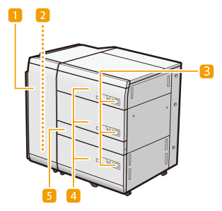 Pentru informații privind greutatea de bază și formatul de hârtie care poate fi utilizat, consultați articolele pentru „Multi-drawer Paper Deck-E” din Hârtie admisibilă. |