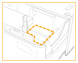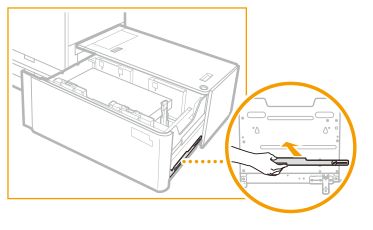Dacă suportul de fixare pentru plăcile de modificare a formatului a fost atașat, îndepărtați-l, apoi atașați-l în poziția specificată, care se află în partea dreaptă a compartimentului pentru hârtie.