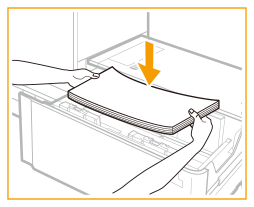 Încărcați teancul de hârtie în magazia de hârtie, cu marginea acestuia aliniată cu peretele din stânga.