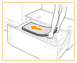 Împingeți teancul de hârtie pentru a-l alinia la peretele din stânga și la placa de modificare a formatului din stânga (interioară).