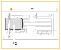 Suportul de fixare pentru plăcile de modificare a formatului este necesar numai atunci când se utilizează foi lungi. Îndepărtați-l când utilizați hârtie de format standard. În plus, nu poate fi utilizat atunci când lățimea hârtiei utilizate este sub 210 mm.