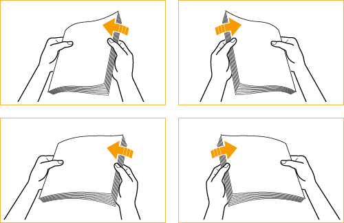 Înainte de a încărca hârtia, aerisiţi întotdeauna foile de mai multe ori şi aliniaţi muchiile pentru a facilita alimentarea. Hârtia proaspăt scoasă din ambalaj trebuie aerisită ca teanc.