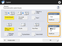 Apăsaţi <Modificare> din <Format Original> şi selectaţi dimensiunea documentului original. Dacă selectaţi <Auto>, dimensiunea de broşură este selectată automat în conformitate cu dimensiunea documentului original.