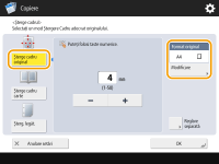 1 | Apăsaţi <Şterge cadru original> şi setaţi <Format Original>. ![]() Dacă dimensiunea afişată în <Format Original> este diferită de dimensiunea documentului original aşezat, apăsaţi <Modificare> pentru a selecta dimensiunea. |