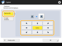 Apăsaţi <Setare> din <Faţa> şi specificaţi distanţa de deplasare. Pentru a indica direcţia, apăsaţi butoanele sus/jos/stânga/dreapta şi introduceţi distanţa de deplasare utilizând tastele numerice.