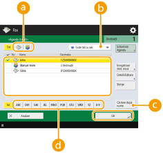 Listă derulantă pentru selectarea tipurilor de agendeVă permite să afişaţi un grup specific de destinaţii. Când sunteţi conectat la aparat cu gestionarea autentificărilor personale, selectând <Liste cu adrese pers.>, se afişează Agenda dumneavoastră personală.