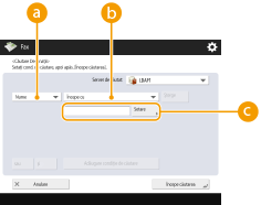 Caractere de căutareApăsaţi <Setare> şi introduceţi caracterele pentru condiţia de căutare.