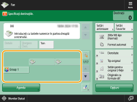 Ecranul caracteristicilor de bază pentru faxSpecificarea destinaţiilor din Agendă