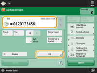 Introduceţi un număr de fax cu ajutorul tastelor numerice şi apăsaţi <OK>.