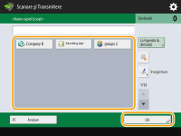 Ecranul Caracteristici de bază pentru scanareSpecificarea destinaţiilor din Agendă