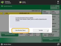 Pentru a anula trimiterea, apăsaţi <Către Monitor Statut>